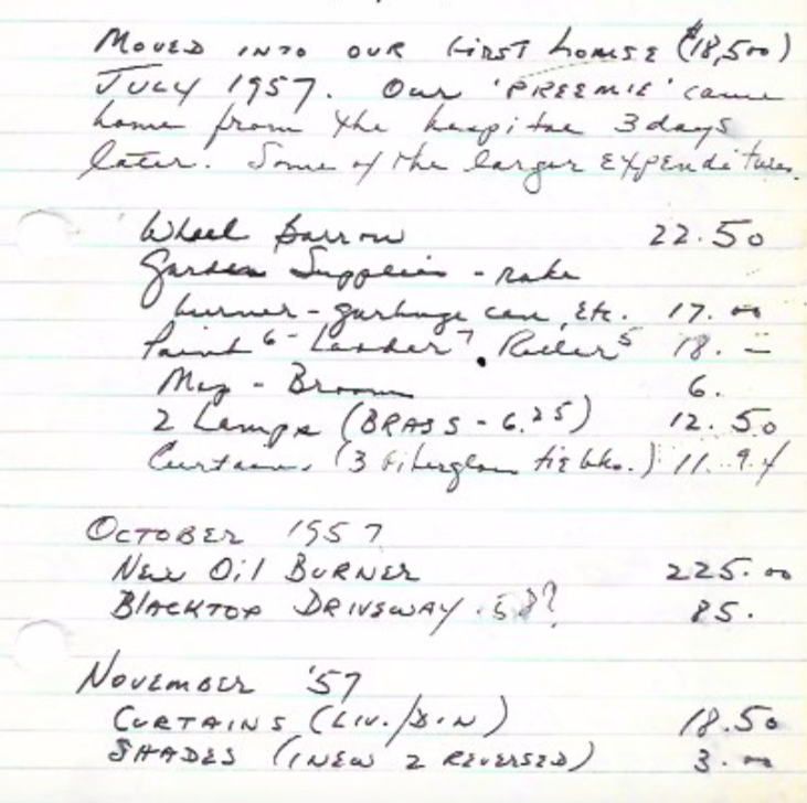 Friends have asked me why my mother was so thorough. Money was always to be husbanded in a family with five children, true. Apart from that, I believe the lists testified to managerial skills that could otherwise have run a company and a family. I also believe that her list making gave material substance to a life marked by doing, not sitting still.