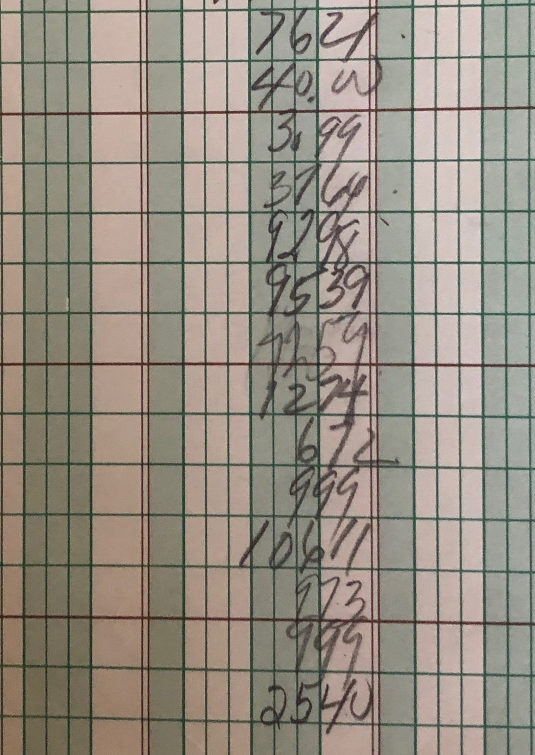 She also kept a list of all the objects she accrued from her work at estate sales. Quite considerable, given she didn’t work on a regular schedule, this particular list has an added dimension. It doesn’t just record what she paid but it also notes who each item was purchased for – virtually everything is annotated with one of our names. A detailed record of maternal generosity and prudence, this list leaves no monies unaccounted for and hardly any wasted space on the page. Paper had its value too.