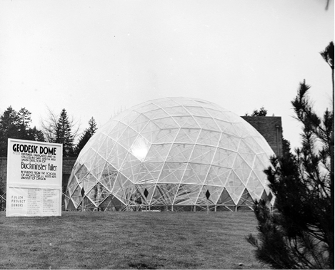 Students from the School of Architecture and Allied Arts designed, fabricated and installed this geodesic dome in seven days in April 1953 under the direction of Buckminster Fuller.