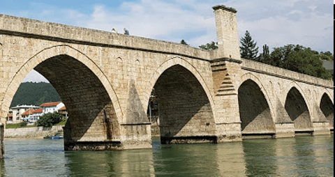 Also, note that the phrases “flew in the skies” and “linked with the town” capture not only the physical sensation of being on a bridge, but also the spirit of what the philosopher Kwame Anthony Appiah calls partial cosmopolitanism. Unlike the cosmopolitan who completely abandons his identity to immerse himself in another’s (think of Lawrence of Arabia), Appiah’s partial cosmopolitans are loyal to the people in their immediate communities and also beholding to the others they encounter—they’re responsible to both polis and cosmos, ergo cosmopolitan. The beauty of the design of the bridge on the Drina is that it provides a space where cosmos and polis can meet.