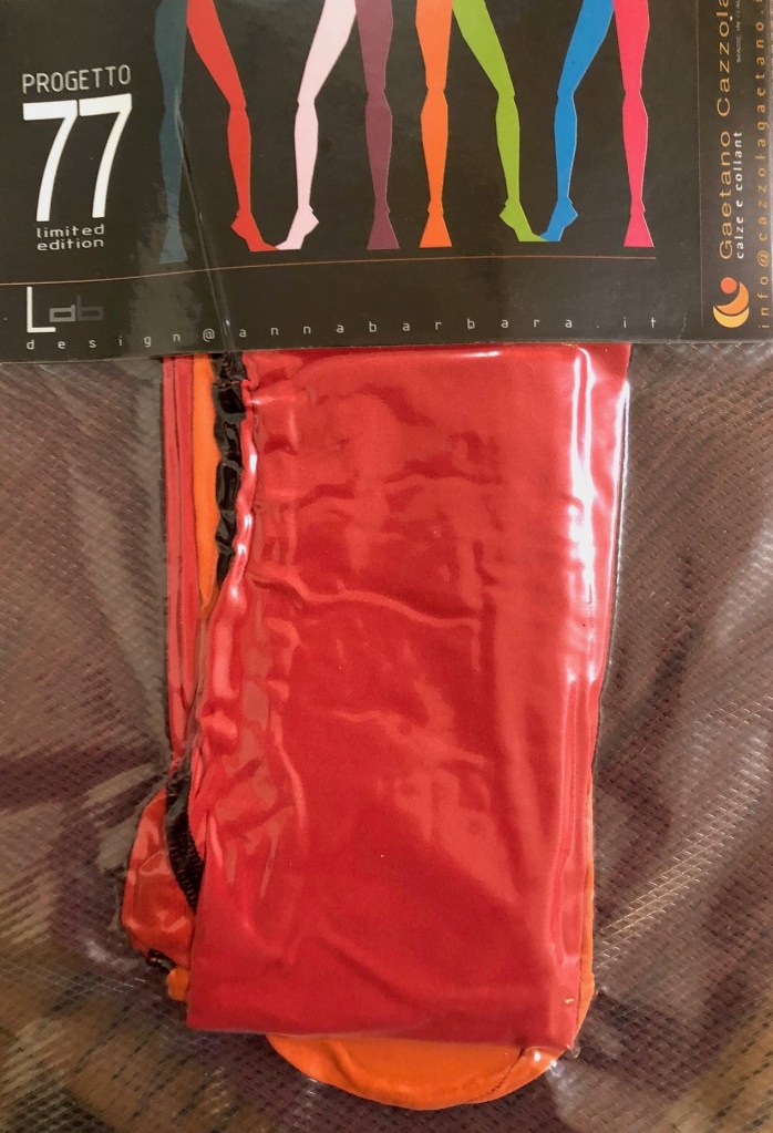 Anna brings the unnoticed into focus sometimes with material haikus and other times with manipulations of everyday objects in projects like “DEA” (a necklace made from her husband’s broken eyeglasses), “Mediterranean Gifts” (a mesh necklace, filled with bits of sea glass she collected in Calabria), and my personal favorite, “77” (an Italian short-hand for women’s legs and the name of her two-toned tights). This is not to say she is yet another found-object fetishist. Her projects work, often performing menial tasks while giving disproportionate pleasure.