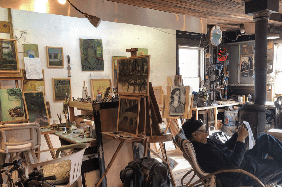 We are well suited to the quiet and even welcome it. More creatures of nurture than nature, neither of us have spent a lot of time outdoors. Strenuous exercise, hunting, fishing, skiing, hiking, and camping weren’t a big part of our childhoods, which I’m certain is why our adult pleasures are largely sedentary. I write and Mike paints. He cooks and I bake. I knit while Mike sets the Roku to MHZ, the streaming platform that takes us to crime scenes Germany, France, Italy, and Scandinavia. (Beats flying.) Very little has changed for us since we were already accustomed to sheltering in place. And that is why this reflection is not going to be about virus-coping but, instead, a patchwork of meditations on our thirty-two year experience of and in Bovina, written by someone whose vocation has already made her socially distant but whose sanity nonetheless is dependent on friends.