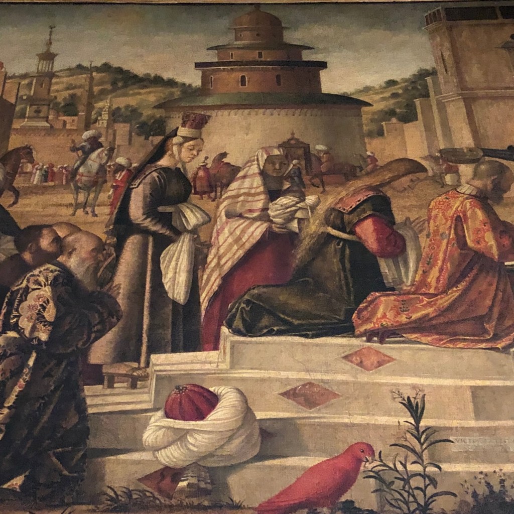 Ever since I took this photo of a detail of the Miracle of the True Cross at the Rialto Bridge by Vittore Carpaccio at the Galleria dell’ Accademia in Venice, I’ve wondered about this elegant man. I wondered about the appropriateness of sharing it on social media, and wondered about whether I was more attracted to the man’s costume than the man. What I didn’t wonder about was whether I was in the presence of beauty.